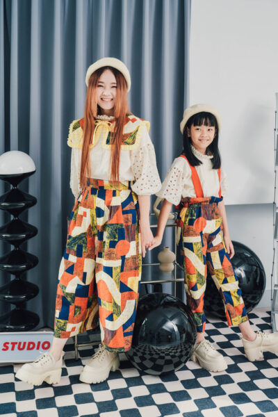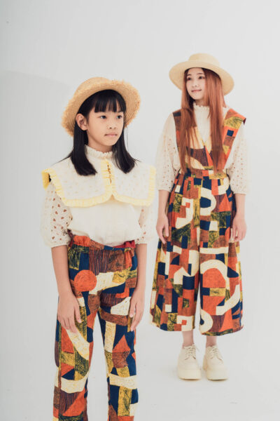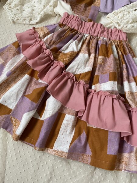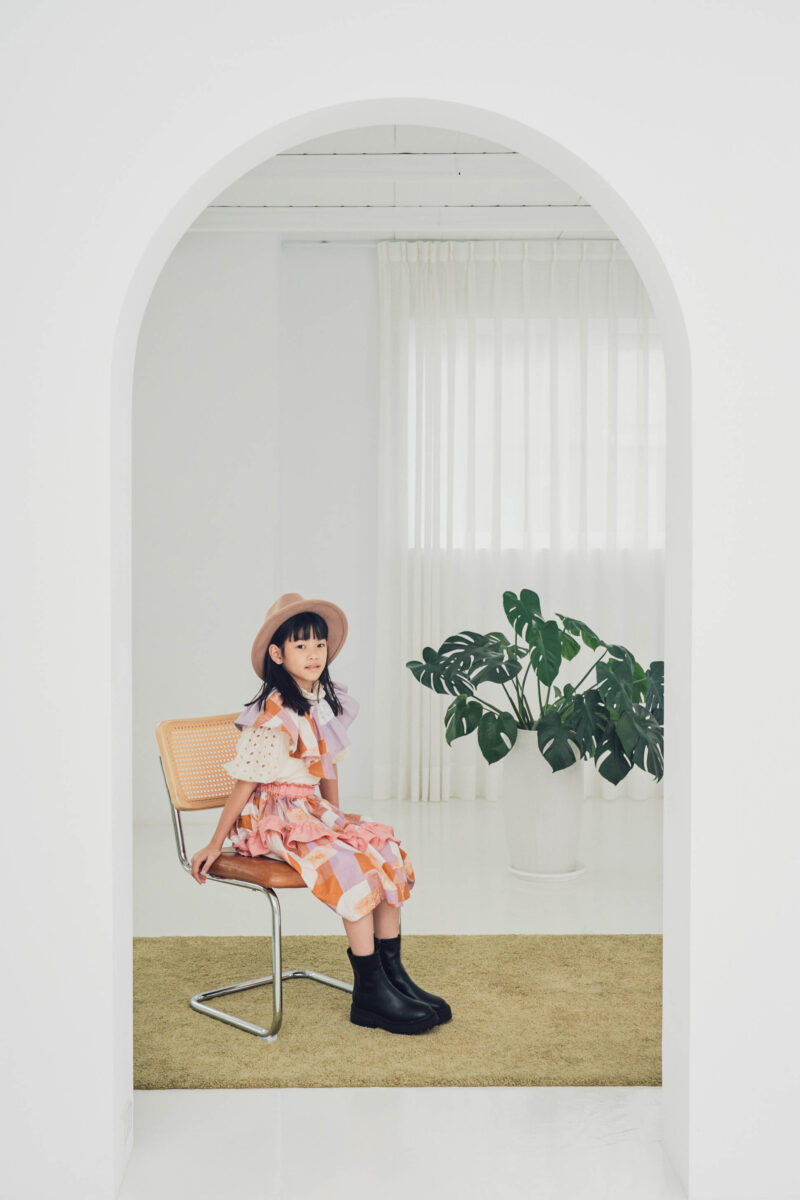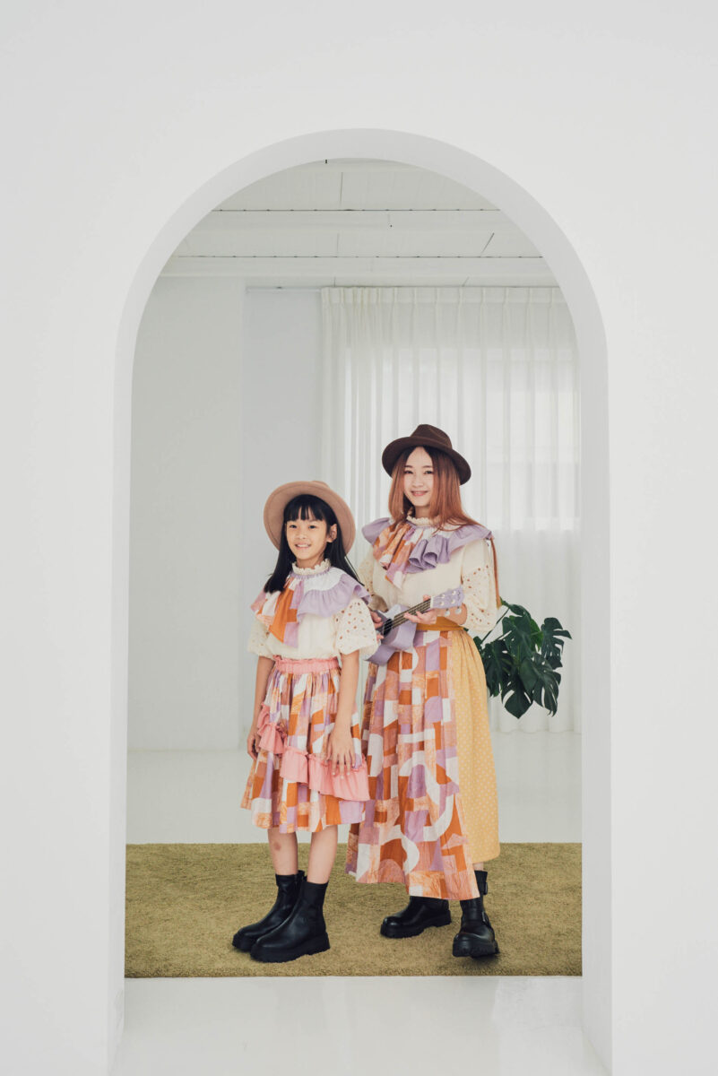 短裙的荷葉以斜邊的設計,增加了視覺層次感